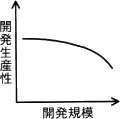 この式を基に,開発規模と開発生産性(開発規模÷開発工数)の関係を表したグラフはどれか。ここで,開発工数の単位は人月,開発規模の単位はキロ行とする。
